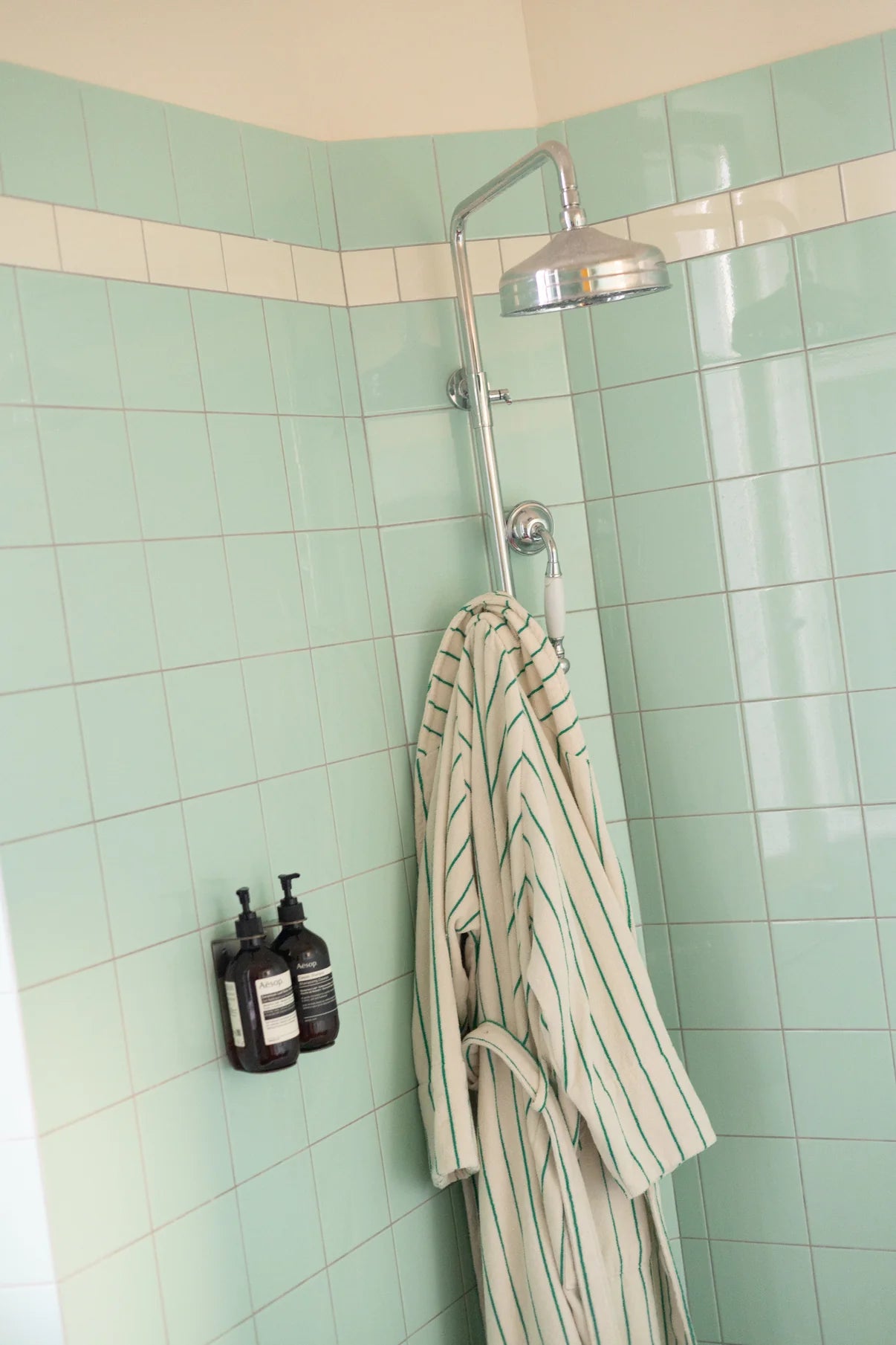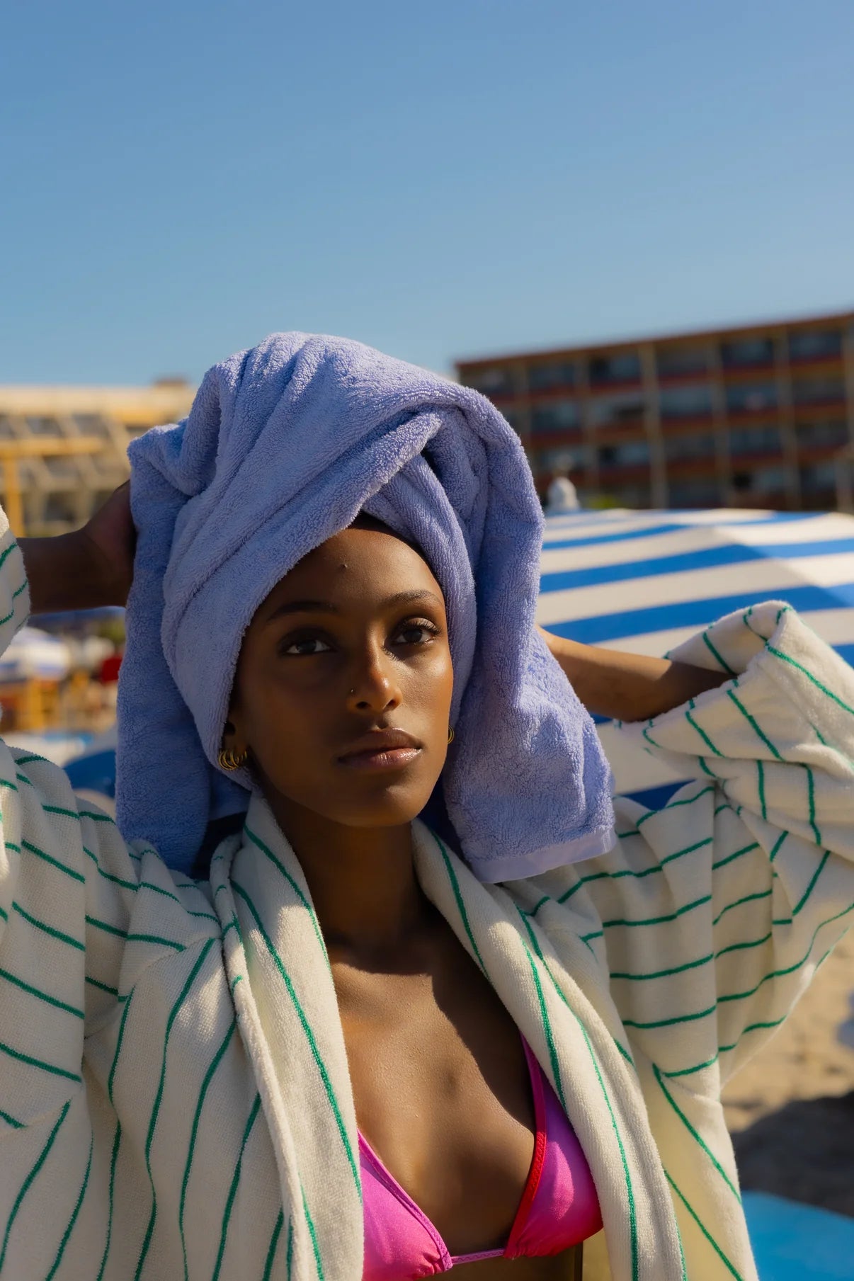 Naram Bademäntel bestehen aus 100 % Bio-Baumwolle und sind OEKO-TEX®-zertifiziert. Der Bademantel ist doppelfädig gewebt, was hohe Saugfähigkeit, lange Haltbarkeit und ultimative Weichheit gewährleistet. Gönnen Sie sich eine sanfte Umarmung mit unserem Naram Bademantel. Verlängern Sie Ihr Baderitual und entspannte Morgenstunden mit einem klassischen Design, sanften Farben und Streifen. Der Bademantel verfügt über einen Schalkragen, eine offene Vorderseite, einen Gürtelverschluss und zwei geräumige Taschen.