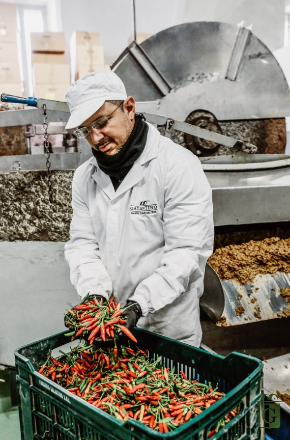 In Apulien gehört die Ölmühle der Familie Galantino zu den ersten Adressen für extra natives Olivenöl. Sie arbeiten immer noch mit alten Steinmahlwerken, extrahieren das Öl aber mit modernen Pressen und Zentrifugen. Ihr Öl aus der Peranzana Olive füllen sie in dekorative, schöne handgetöpferte und -bemalte Keramikkrüge. In Bisceglie bei Bari stellen sie außerdem das Klassenzimmer im Fach Olivenöl für die Studenten der Slow Food Universität in Pollenzo.