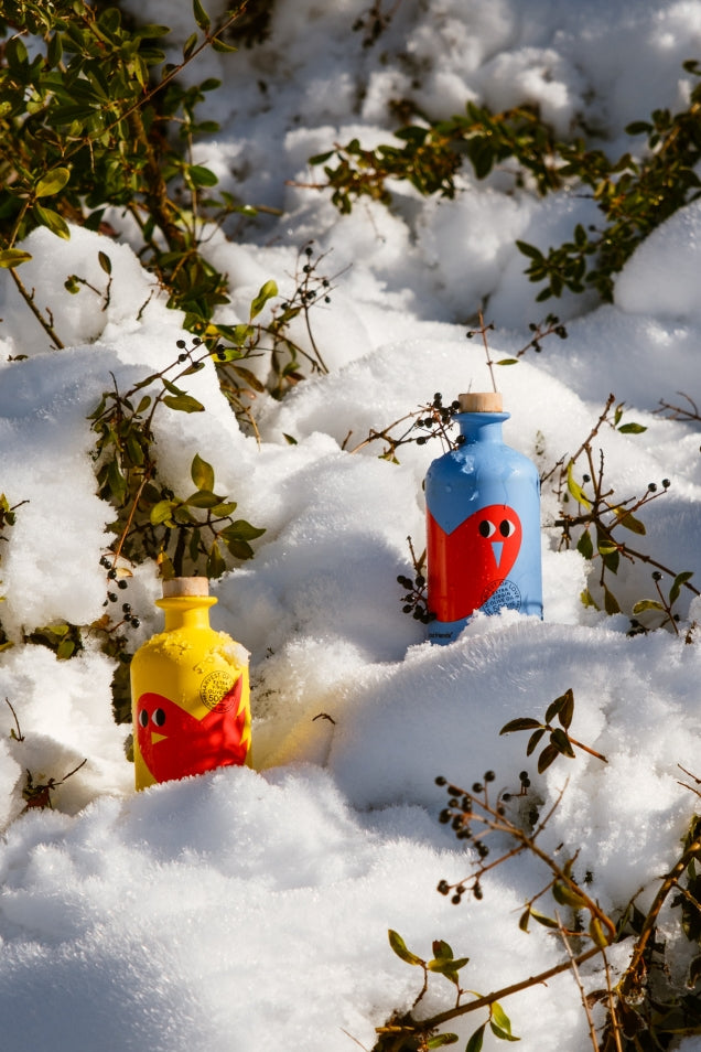 „Ein Paar Liebesvögel, die Seite an Seite gehalten oder mit einem geliebten Menschen geteilt werden — jeder hält eine Herzhälfte, wie ein geschätzter Glücksbringer. Öffne den Verschluss und verwandle jedes Gericht mit einem großzügigen Schuss von yiayias goldenem Olivenöl.“